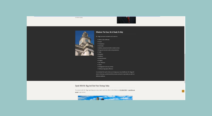 While it’s important to include contact information and a logo on your site, it’s also important to make it easy for potential clients to understand who you are and what kind of legal services you offer.